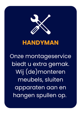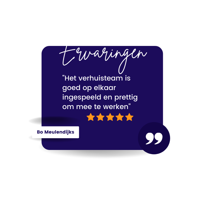 Onze diensten omvatten alles, van grote tot kleine verhuizingen, meubel- en inboedeltransport, verhuisliftverhuur, spoedverhuizingen, in- en uitpakservice, witgoedtransport, ontruimingen die volledig schoon worden opgeleverd tot bedrijfsverhuizingen. Ons team staat altijd klaar om je te voorzien van deskundig advies en praktische ondersteuning om jouw verhuizing tot een succes te maken."